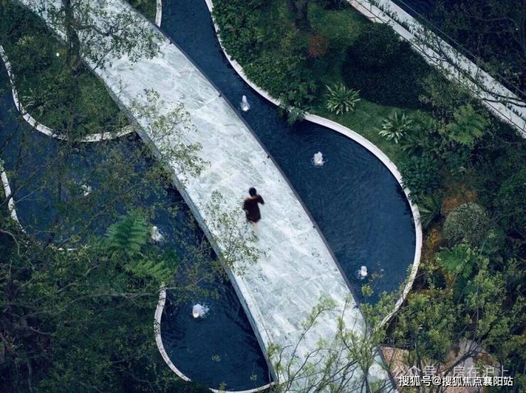 项目的巧思在于“无界融合”。通过巧妙的 立体水幕设计 ,将地面公园与 约2000㎡的下沉式顶奢会所 自然衔接。