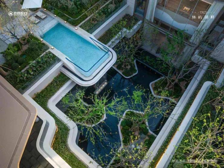社区规划方面,招商・林屿湖畔以 “低密纯粹、东方隐奢、全龄互动、科技赋能” 为核心,融合现代美学与生态宜居理念,打造嘉定新城标杆级高端社区。项目容积率仅 2.2,远低于区域普遍 3.0 + 的标准,建筑密度低,留出更多空间打造园林景观与公共配套,保障楼间距开阔、采光通风充足、居住私密性强。建筑立面采用游艇风全曲线铝板工艺,搭配大面积玻璃幕墙,打造轻奢、大气、通透的建筑质感,成为远香湖片区的标志性建筑。社区景观由国内顶尖团队操刀,首创 420㎡峡谷式下沉庭院,搭配 4.3 米层叠飞瀑,打造 “一轴三境、五进归家” 的礼序空间,从社区大门到中央景观轴、下沉庭院、入户花园,层层递进,营造沉浸式生态体验。中央景观轴串联阳光草坪、景观水系、名贵乔木与花境组团,打造 “一步一景、四季皆景” 的视觉盛宴。