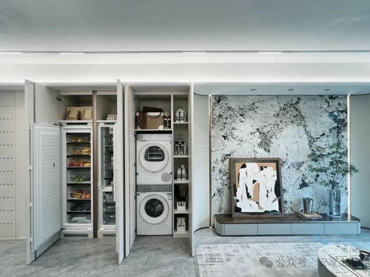 这样一来,客餐厨中,搭配可移动式的“开放式厨房”设计,直接“包圆”了,俨然一个“荟聚场”。