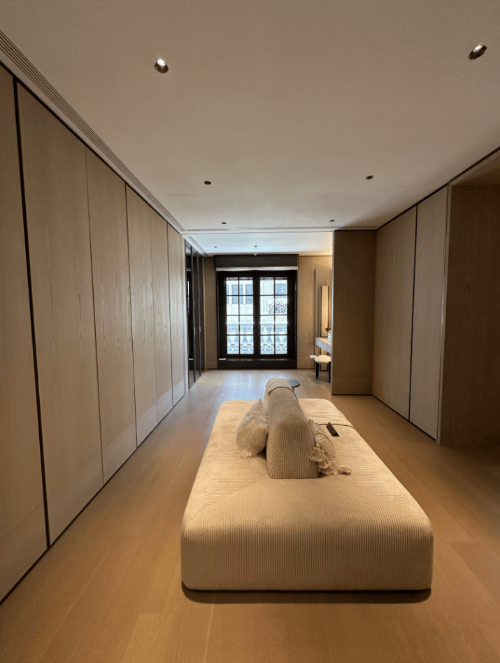 靠户型东侧,样板间设计了一个独立衣帽间和主卧套房的第二个卫浴空间。