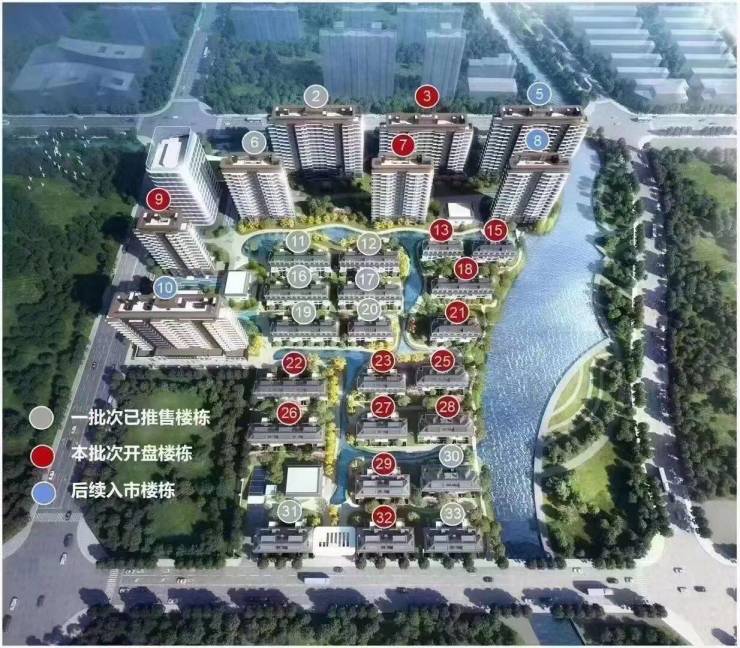 规模:总占地约 5.3-6.5 万方,总建面约 10.6-14.9 万方,规划 8 栋 14-16 层小高层、21 栋叠加别墅,总户数 820-845 户,圈层纯粹