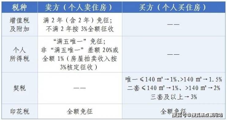 一表读懂房产交易双方税费