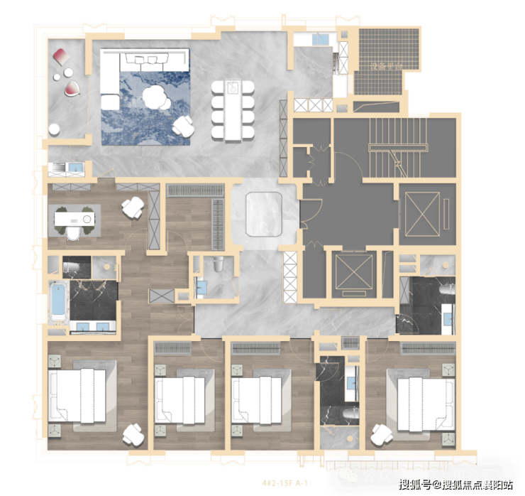 建面约 303㎡五房两厅四卫 :总价约 4400 万起,五开间朝南,约 12 米大横厅,双套房设计,主卧配备独立衣帽间与卫生间,奢享私密舒适的主人空间。