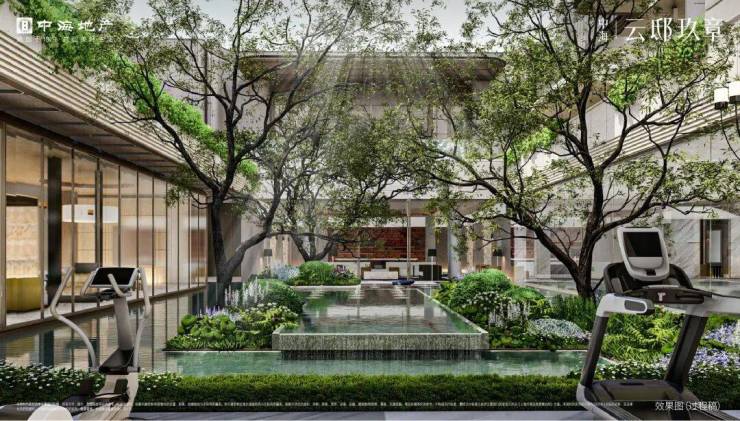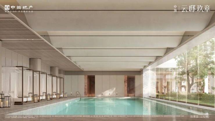 项目南区配备了一个 高端会所 ,内含 健身房,沙龙会客厅,私宴厅、恒温泳池 等。恒温泳池紧邻下沉庭院,大面积落地窗设计打通了室内外的视野,中间无立柱遮挡,为家庭带来了度假式的亲子畅游体验。