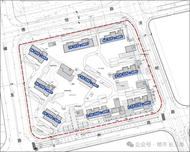 根据项目规划设计方案,07-01地块 拟建9幢超高层住宅,其中7幢百米高层住宅(28-32层)、1幢83米高住宅(25层)和1幢86米高住宅(26层) ,若干社区配套用房以及部分商业设施,共计规划约794户。建面120㎡以下中小套型占比要求不低于40%。