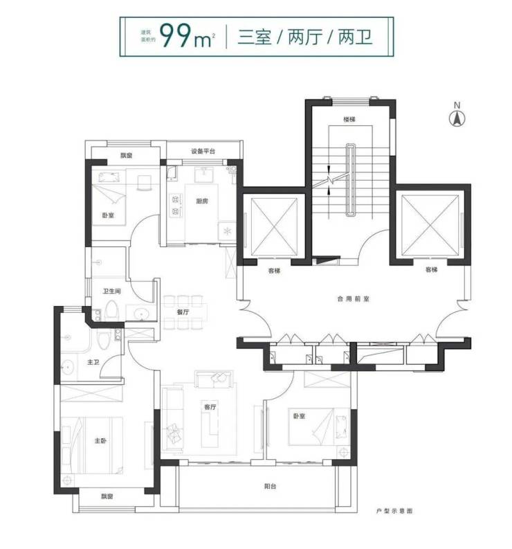 采用两梯两户的设计,空间利用率高,业主可拥有宽敞的开门空间,出行也更加方便快捷。