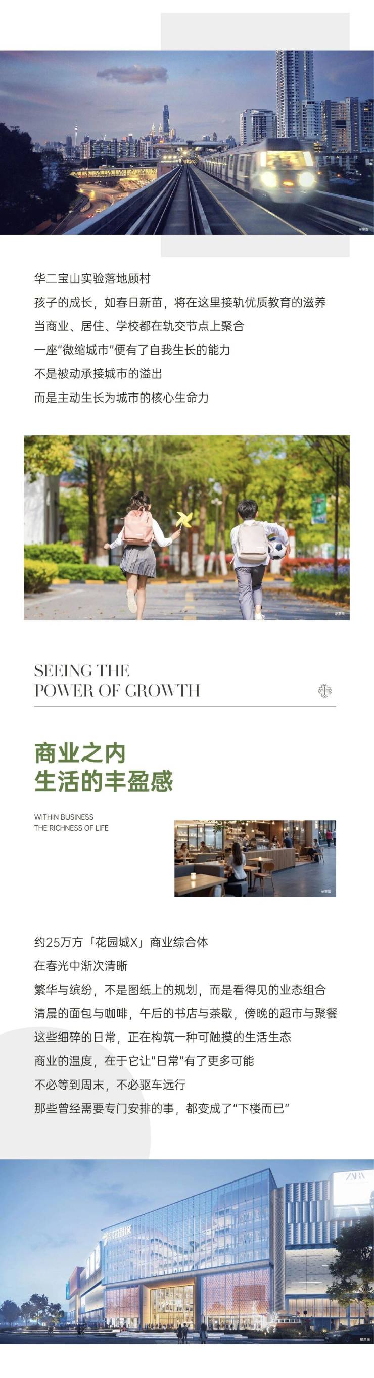 项目自带 约 25 万方招商花园城 ,是招商自己运营的大型商业综合体,吃喝玩乐、购物休闲一站式满足。平时买菜、买日用品,楼下就能搞定;周末和朋友聚餐、看电影、逛商场,不用跑远路。周边还有正大乐城、龙湖北城天街,开车 5 分钟就到,商业配套直接拉满。