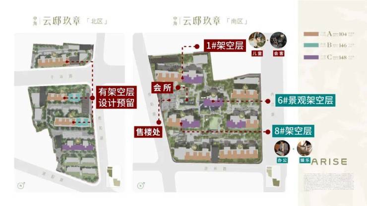 项目南北区各有3幢楼预留架空层设计,,规划各具特色的功能,让业主 “0”距离享受丰富多彩的“泛会所”体验。