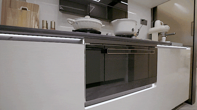 贝克巴斯零售款龙头,只需伸手感应就能出水;水槽下方的 方太16件套洗碗机和方太净水器 , 既充分利用了下半部分空间,实用性又很高。