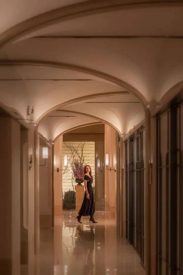 景观方面, 内环最大的约3200㎡私属花园,以外滩源1号英领馆为灵感母本。玉带环腰,镜水园庭,六大世界艺廊花园承袭巴黎杜乐丽花园造园哲思,四季景致轮转。 全域艺术归家连廊体系,晴雨皆从容。