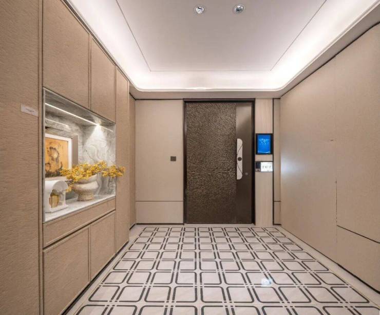 入户门厅:闵行首例类1梯1户全明梯厅,全域拥享,从容步履,开启专属的静谧日常。