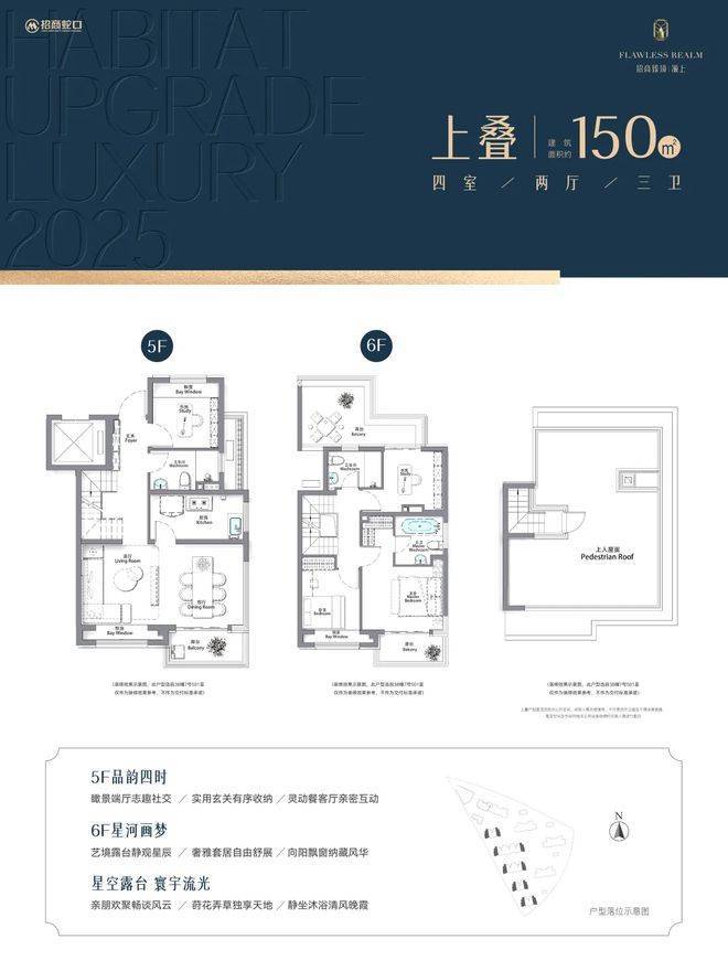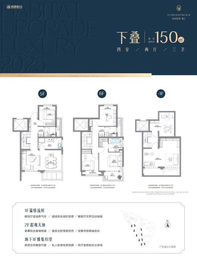 招商臻境目前还在售建筑面积约146-150㎡甄稀的滨水叠墅。