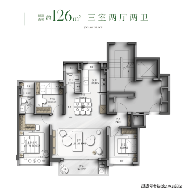 建面约126㎡样板间实景图,以实际交付为准