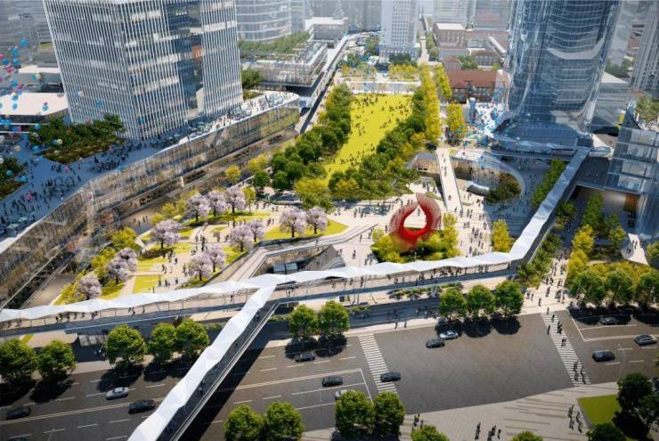项目南侧的北外滩核心区,更是发展的重中之重。 1/5的土地上,将承载了北外滩超四成的建筑体量 。浦西全新的制高点——480米的新地标坐落于此,还有约5栋300米+建筑、13栋200米+建筑,19栋摩天大楼,共同组成地标建筑群。