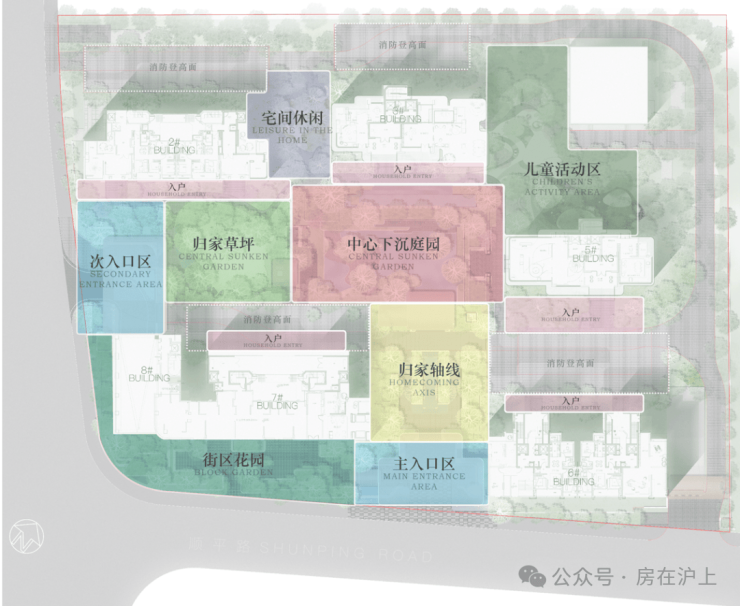 全部楼栋底层局部架空,打造多个景观架构,最大楼间距达到43米,并在小区中央位置配置下沉庭院;