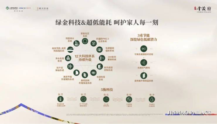「张江金茂府」 利用科技及超低能耗硬核, 深度进阶12大科技系统 与 五衡科技 等技术核心。