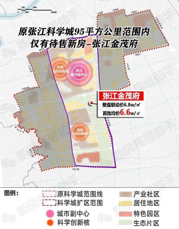 「张江金茂府」则是2017年张江科学城95平方公里规划范围内 (信息来源于张江科学城官网) 仅有的新房项目,整盘联动价6.8w/㎡,首批均价仅约6.6w/㎡,难得的真正张江科学城的置业机会!