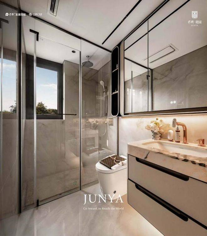 ④她享主义的革新:注重女性居住体验,在上海首创“女神4件套”的基础上再度革新,升级为“女神6件套”!于主卫配置科勒美妆龙头、美妆镜柜、双补光照明、专属美妆冰箱基础上升级奥普美容舱浴霸及进口胭粉奢石台面,构成周全的她享主义系统。