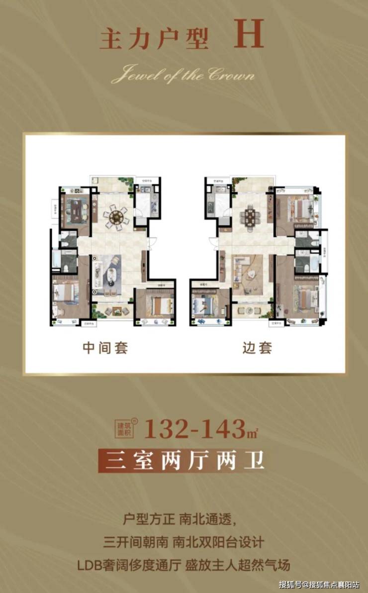 132㎡3房2厅2卫:三开间朝南,南北双阳台,主卧套房带飘窗,刚需改善首选;