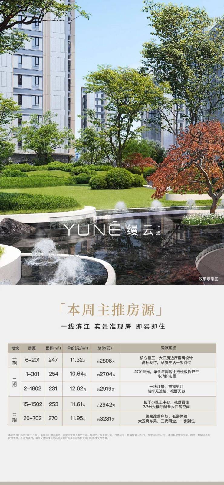 据悉:【缦云上海】三期收官加推,主力面积约229㎡/253㎡/269㎡/330㎡大平层/小洋房在售,其中在售大平层高区可看一线黄浦江景,洋房位于楼王央座,主力户型3.3-3.5米层高,都是一梯一户设计,总价2600万起!可直接认购!实体样板间开放中!线上提前预约!