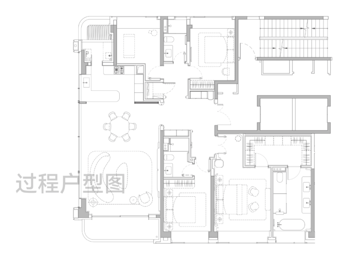 主卧配置步入式衣帽空间、双台盆+大浴缸主卫。