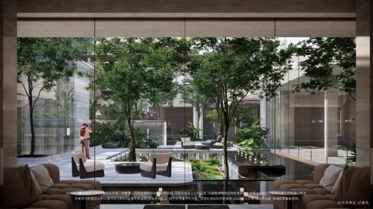 双轴线的设计 ,充分拓宽了视野面与观赏点位, 环形回廊、精神游廊与下沉庭院 通过立体景观平台相融,又创造出隔岸听泉的诗意场景。在每个重要生活触点,业主都能拥享独特景观和欣赏视野。