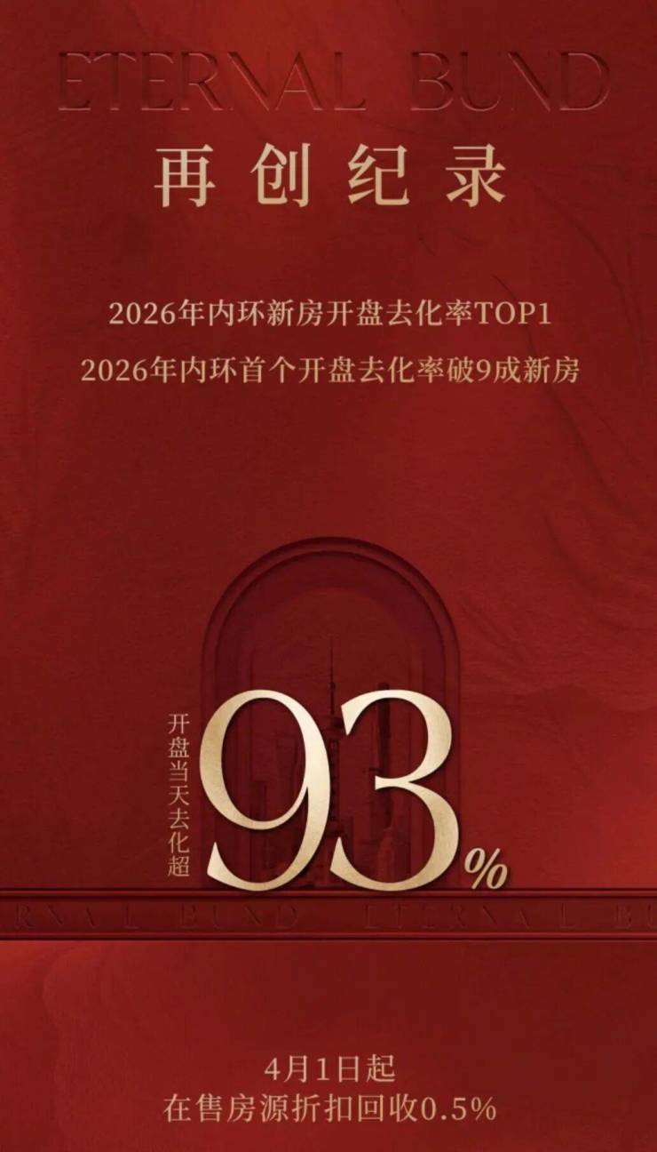 位于杨浦滨江的保利·外滩曜二批次已开盘,当日售出超93%,项目还有少量房源销售,均价141950元/平。