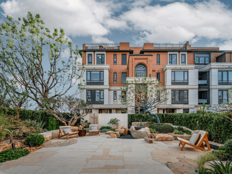 所有产品均采用现代简约与海派美学融合风格,洋房立面简洁大气,联排别墅以红砖与深古铜色铝板打造质感立面,还原海派建筑精髓,三段式质感立面与周边自然景观相得益彰,彰显高端墅居格调。