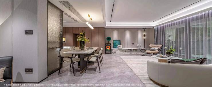 2. 地下车库:追光式奢石地库,车库入口采用雪山兰奢石墙面,搭配香槟金色吊顶+追光式灯带,营造层层递进的礼序感,比很多千万级豪宅的“星空顶”车库更高级,每次归家都充满仪式感。