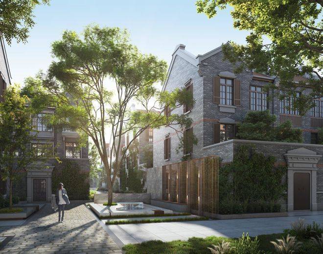 整体规划一横两纵三大轴线, 串联高层住区、文化保护别墅区、新海派风貌别墅区,通过不同设计语言形成“新旧交融”的空间节奏——高层区以现代简约线条演绎都市格调,别墅区则复刻历史肌理并注入现代美学。