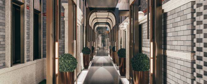 特别设计了八大映象典藏场景景观节点,有百年梧桐下的静谧巷道串联各景观节点,还有充满文化积淀的海派艺术庭院等,营造出精致、典雅的高阶生活氛围。