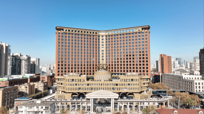 项目首层通过 硬朗直线呼应柔和曲线勾勒,辅以温润石材与古铜色金属线条 融合,打造东西方美学共融的艺术藏品