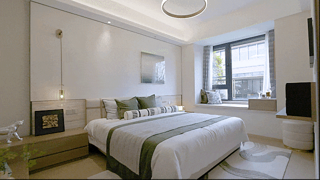 洗漱台、马桶区、淋浴区干湿分离,家人“使用高峰期”不尴尬,每一个早晨更从容。朗阔主卧配置飘窗,延伸空间格局,搭载收纳功能与休闲功能,创造私密互动小天地。