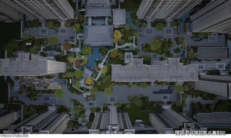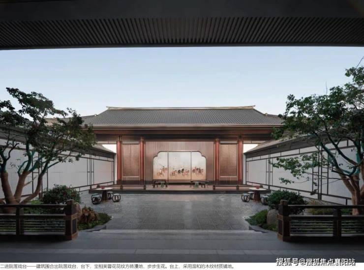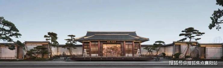 二进闲庭碎影 :中央水景广场借鉴大明宫含元殿意象,叠山理水、亭台楼阁错落分布,全冠移植日本罗汉松、五针松、百年金桂等名贵苗木,搭配曲水、石桥、风雨连廊,四季皆景、步移景异。