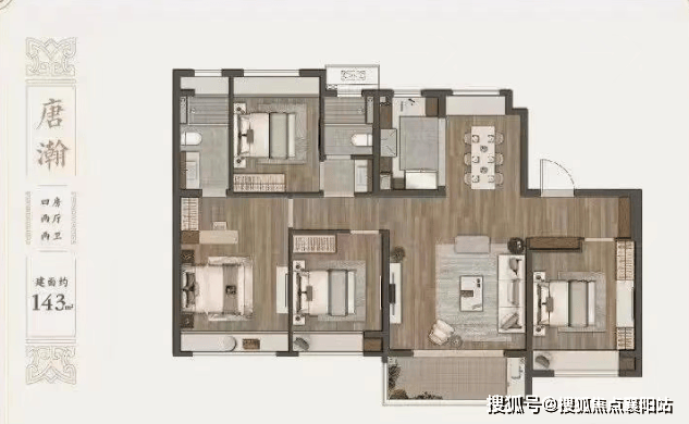 建面约 143㎡四室两厅两卫 :高端改善标杆,四开间朝南、南北通透,南向面宽约 14 米,客厅面宽约 4.5 米,空间奢阔;双套房设计,主卧与长辈房均带独立卫浴,兼顾家人私密性;四室布局适配三代同堂、二胎家庭,总价约 543 万起,性价比突出。