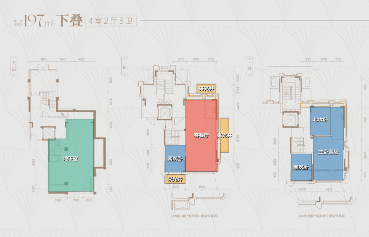 建面约250㎡叠墅四房两厅三卫,是高端改善的终极之选,空间阔绰,布局方正,功能齐全,能够满足三代同堂的居住需求,彰显居者的身份与品味。叠墅产品自带庭院或露台,让居者在都市中也能拥有专属的院落空间,闲暇时,可在庭院里养花种草、喝茶看书,享受东方院落的静谧时光;户型采用上下分层设计,动静分离极致,一层为活动区域,客厅、餐厅、厨房一线贯通,空间通透感十足,可容纳多人聚会,彰显主人的待客之道;二层为休息区域,主卧套房设计,配备独立卫浴、步入式衣帽间和观景飘窗,私密性强,舒适度高,每天清晨,被阳光唤醒,推开飘窗,即可欣赏社区园林美景,开启美好的一天;多个次卧空间宽敞,可作为儿童房或老人房,还可设置专属书房、茶室,灵活多变,满足家庭的不同需求;三卫生间设计,干湿分离,兼顾了便捷性与卫生性,避免了家人洗漱的拥挤,提升了生活的品质。