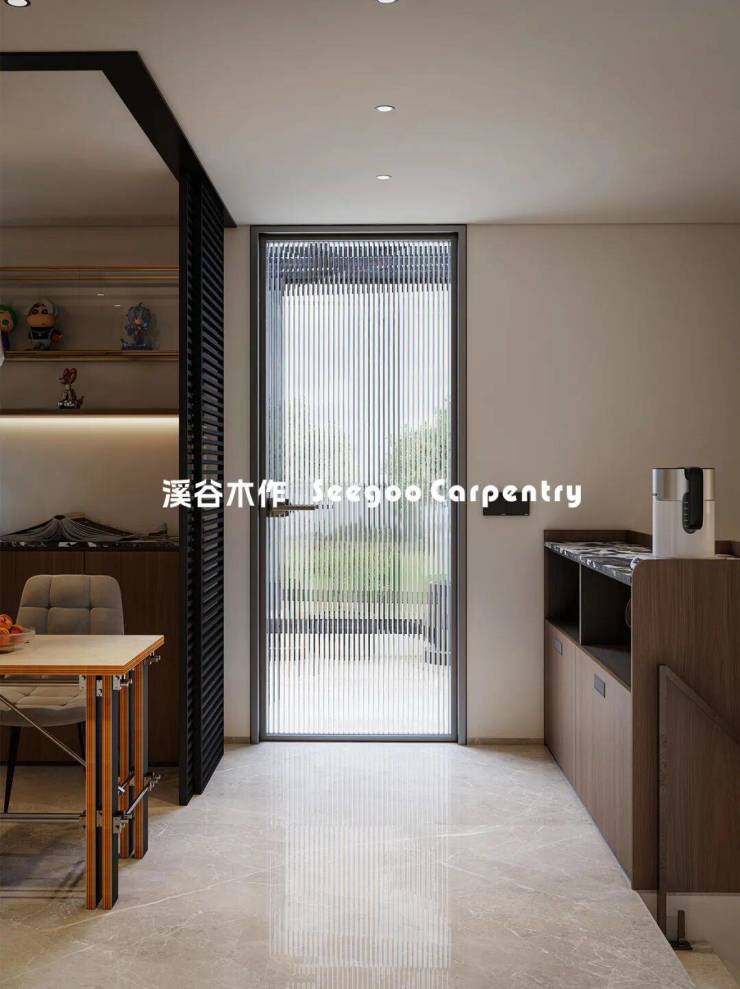 以建面约 200㎡下叠户型为例,为四室两厅四卫设计,南向私家庭院约 80㎡,青砖铺地,搭配绿植与水景,可打造私人花园、户外茶座、烧烤区,满足家庭社交与休闲需求;一层层高 3.3 米,客厅面宽约 8.5 米,搭配全景落地窗,与庭院无缝衔接,采光通透,视野开阔;LDKG 一体化设计,客厅、餐厅、厨房、花园无界连通,形成约 60㎡的超大社交空间,满足家族聚餐、朋友宴请需求;一层还设置一间老人房套房,配备独立卫浴,方便老人居住,避免上下楼不便。
