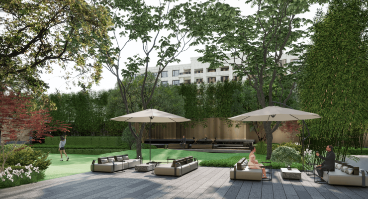 而且35%的高绿化率,相当于把近一半的土地都用来做绿化,小区里随处可见绿植、花卉、景观小品,打造出“推窗见绿、入园即景”的沉浸式园林社区。古北99以“森居”为设计理念,深入挖掘自然生态之美,将绿植景观与休闲空间相结合,打造区别于普通现代社区的生态质感,让业主每天都能在园林中感受自然之美,享受惬意的生活。