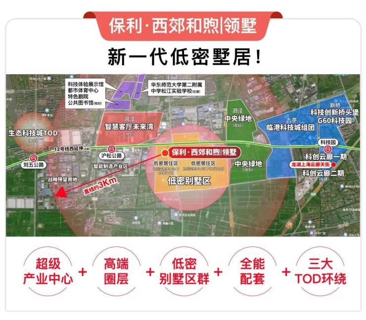 上海西郊,作为城市高端居住的发源地,拥有百年墅区开发历史。从虹桥路沿线的老洋房,到莘庄、七宝的低密社区,再到如今洞泾、新桥的新兴墅区,西郊始终以 “低容积率、高绿化率、纯粹圈层” 为核心,成为上海高净值人群的终极改善选择。历经数十年开发,西郊墅区土地资源已极度稀缺,低密纯墅供应更是 “凤毛麟角”。 保利西郊和煦 正处于西郊墅区向西南延伸的核心节点,紧邻莘闵别墅区、新桥别墅区,与传统高端住区一脉相承,共享 “低密、生态、静谧” 的居住氛围,是西郊墅区文脉的当代延续。
