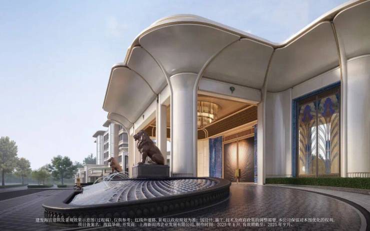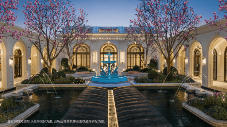 在约200米的超规模中轴中,建发海宸融入了 黄浦秋涛、夜月涟漪、凤亭问泉、华亭烟雨、海天华堂,构筑了高定园林空间。