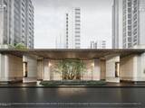 经典平衡对称美学,让建筑庄严不失灵动。大面玻璃、金属格栅、现代铝材搭配,辅以玫瑰金与学府灰色彩,彰显建筑立面的鎏金质感与美学。4大景观中轴、全域花园主题空间,让家生长在公园里。