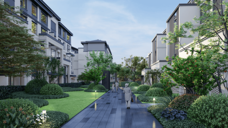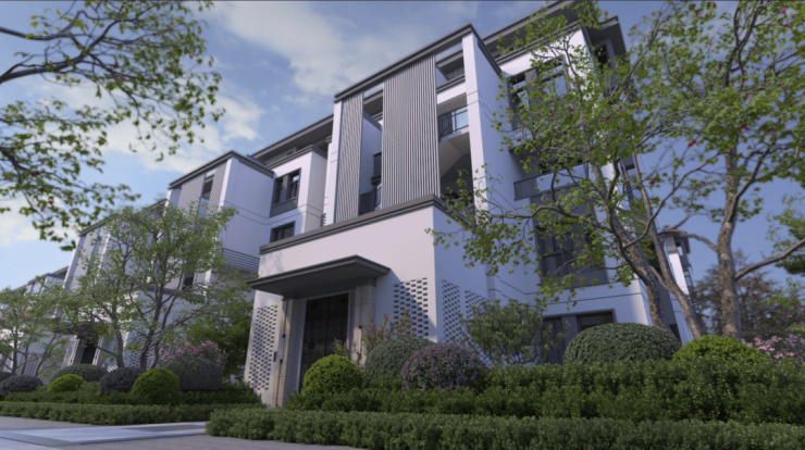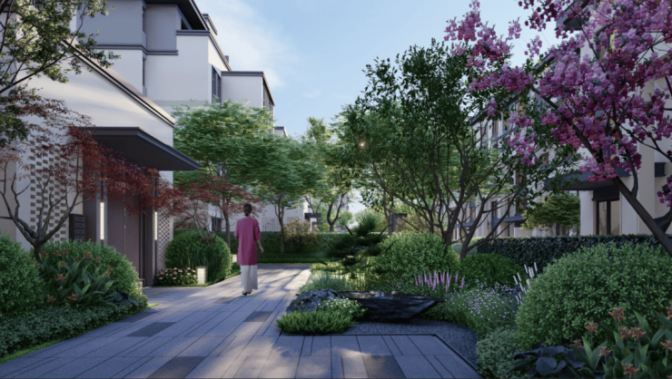 产品方面,项目以现代中式风格为基底,凝萃平坡结合手法,融入顶部挑檐及坡顶设计,全心呈现建面约117-129㎡ 中式叠墅、建面约 85-95㎡ 逸境洋房洞见大匠修为。