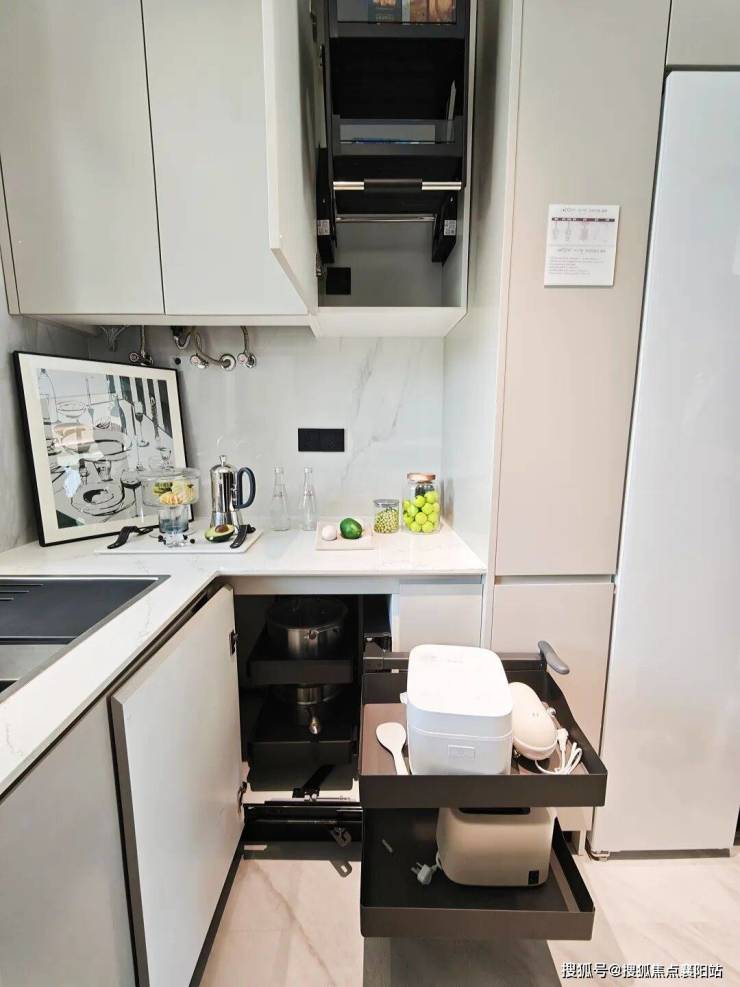 另一方面用「超级收纳」直击客户痛点,厨房内调味拉篮、锅具拉篮,800碗碟三层拉篮,餐厅零食拉篮柜一应俱全。