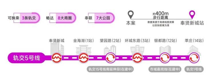 轨交网络: 5号线、15号线南延伸段(在建中)、市域嘉闵线南延伸段(规划中)、沪乍杭高铁(规划中)及南枫线(在建中)