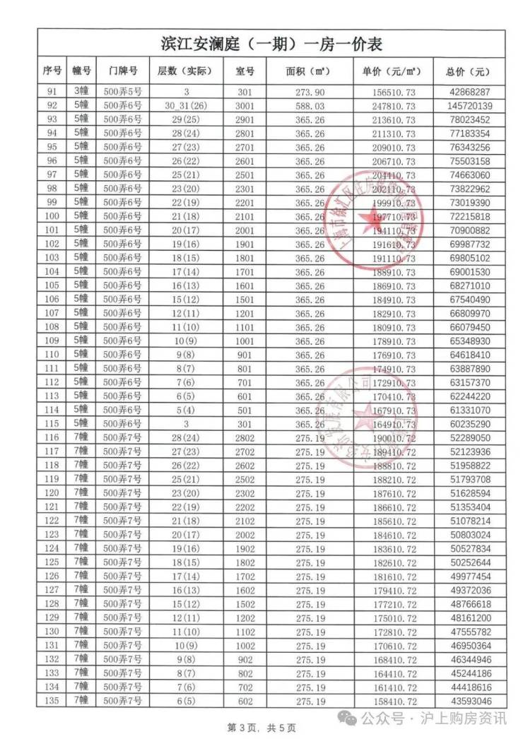 一房一价表