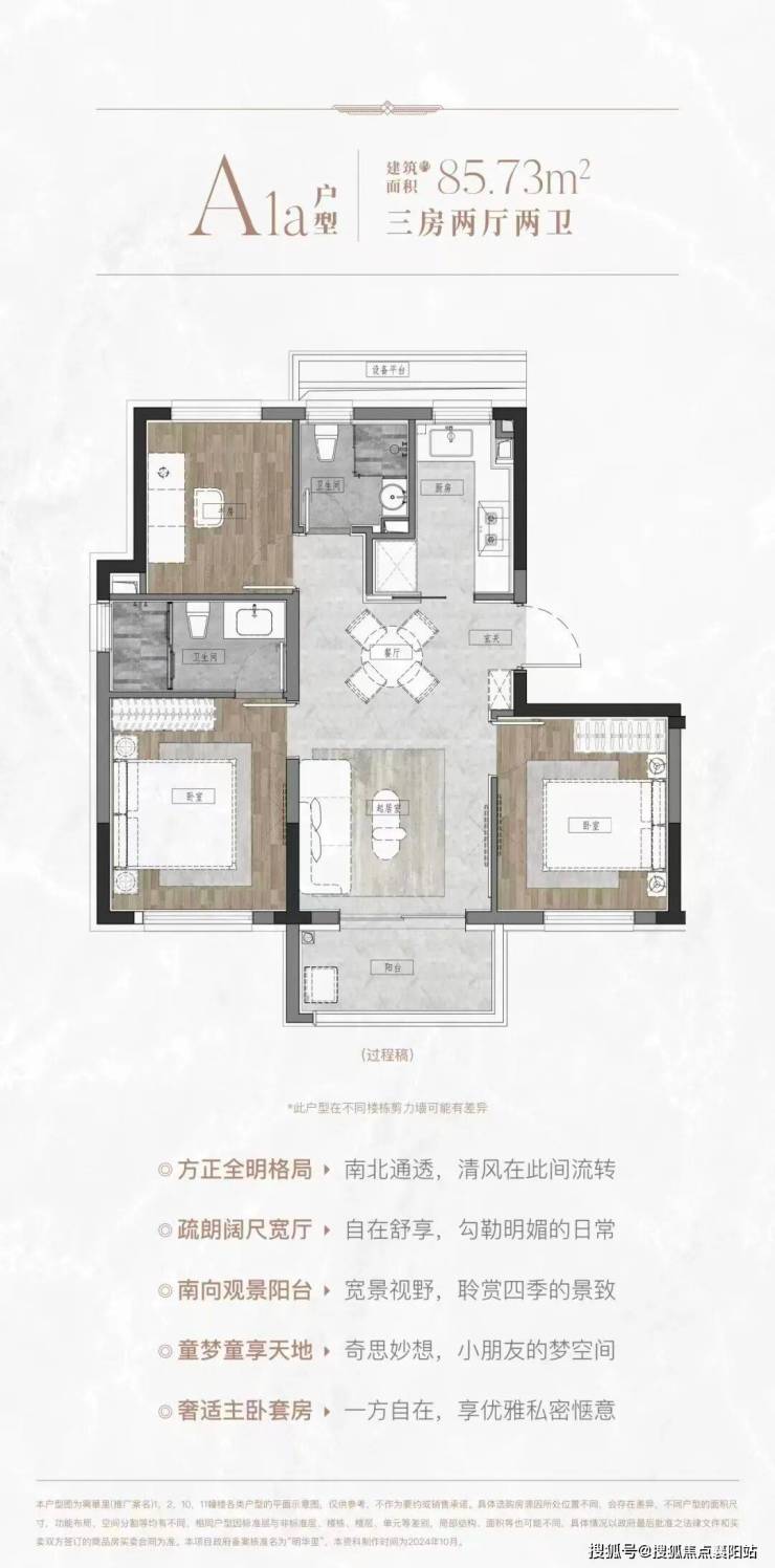 建面约 86㎡三房两厅两卫 :品质改善优选,南北通透、主卧套房、双卫设计,总价 1000 万级,适配三口之家、二胎家庭。