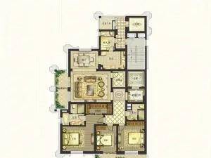 275-330㎡四房:四开间朝南、8 米宽厅、双套房设计,私密性强、奢阔尺度;