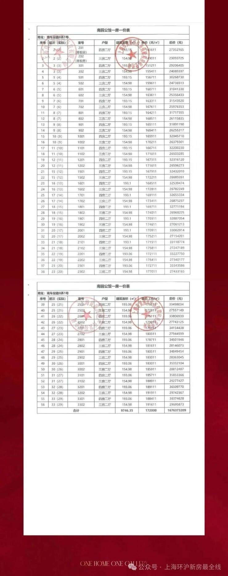 一房一价表: