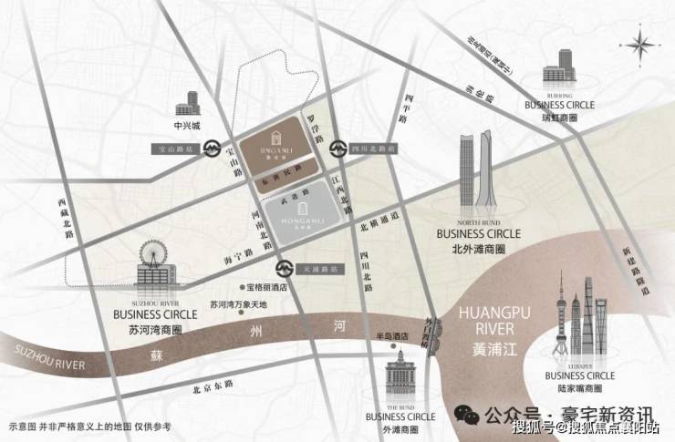 直线距离约3公里范围内,汇聚苏河湾万象天地、 北外滩商圈 、南京西路商圈、外滩商圈、陆家嘴商圈等