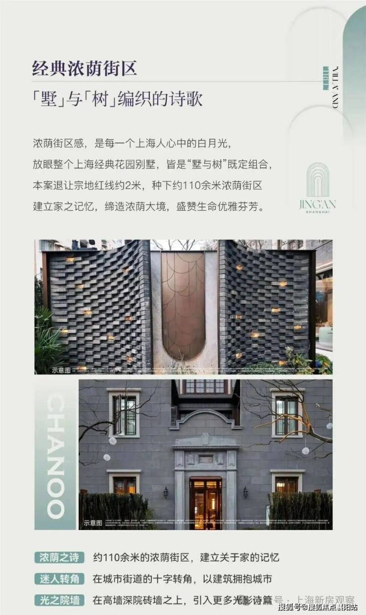 风貌别墅延续了上海石库门风格。 青砖黛瓦,红色腰线,南向面宽最大的大概约15米左右。从一扇门、一扇窗中保留和创新,同时区别“里弄式”别墅的小格局、少采光、多浪费 ;空间布局灵活,满足不同高阶家庭生活需求,递呈出静安苏河畔难得的海派浓荫别墅。